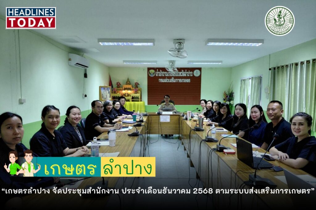 วันที่ 24 ธันวาคม 2568 เวลา 13.30 น. สำนักงานเกษตรจังหวัดลำปาง จัดประชุมสำนักงานเกษตรจังหวัด (PM) ประจำเดือนธันวาคม 2568 โดยมีวัตถุประสงค์เพื่อเป็นการขับเคลื่อนงานตามระบบส่งเสริมการเกษตร ณ ห้องประชุมสำนักงานเกษตรจังหวัดลำปาง อำเภอเมืองลำปาง จังหวัดลำปาง โดยมีนายอภิรักษ์ หลักชัยกุล เกษตรจังหวัดลำปาง เป็นประธานการประชุม พร้อมด้วยหัวหน้ากลุ่ม/ฝ่าย และเจ้าหน้าที่สำนักงานเกษตรจังหวัดลำปางเข้าร่วมประชุม โดยที่ประชุมได้ติดตามงานตามระบบส่งเสริมการเกษตรโครงการงบประมาณปี พ.ศ. 2569 ตามภาระกิจงานกลุ่มงานส่งเสริมและพัฒนาการผลิต กลุ่มยุทธศาสตร์และสารสนเทศ กลุ่มงานอารักขาพืช กลุ่มส่งเสริมและพัฒนาเกษตรกร และการบริหารงานด้านต่าง ๆ แลกเปลี่ยนเรียนรู้ ข้อเสนอแนะ แนวทางการดำเนินงาน แนวทางในการแก้ไขปัญหาการดำเนินงาน เพื่อพัฒนาการดำเนินงานของสำนักงานเกษตรจังหวัดลำปาง