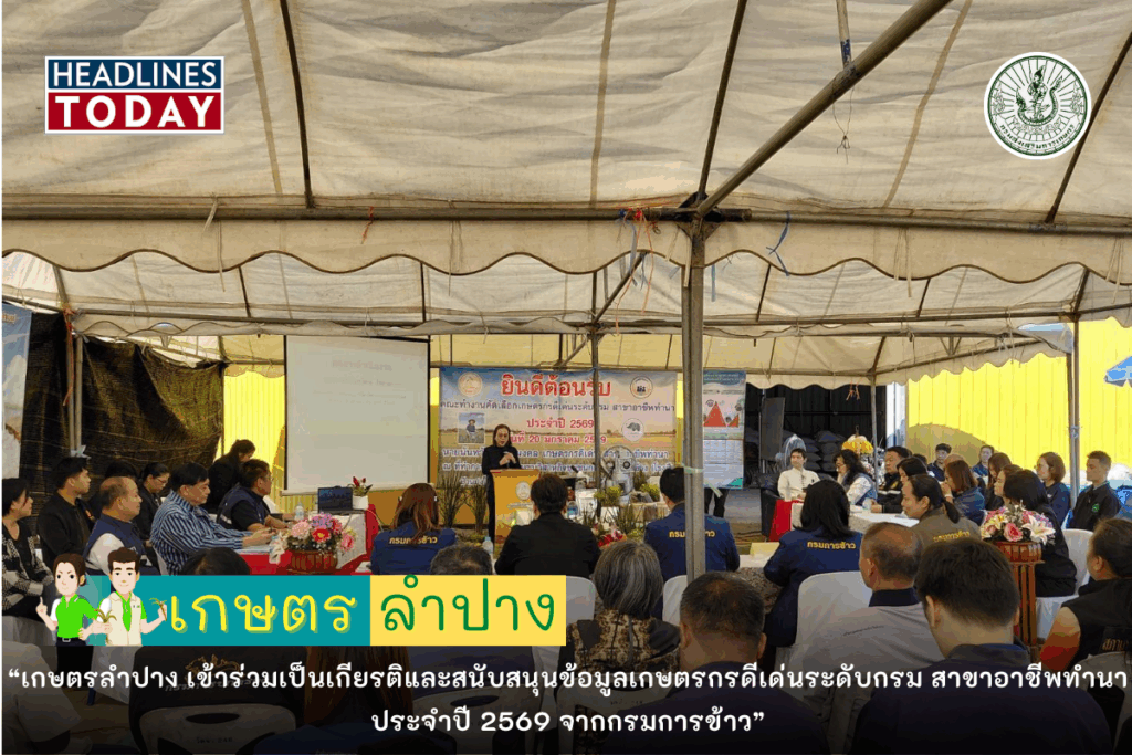 วันที่ 20 มกราคม 2569 นายอภิรักษ์ หลักชัยกุล เกษตรจังหวัดลำปาง มอบหมายให้นางสาวสุบิน แก้วเต็ม หัวหน้ากลุ่มยุทธศาสตร์และสารสนเทศ พร้อมด้วยเจ้าหน้าที่สำนักงานเกษตรจังหวัดลำปาง เข้าร่วมเป็นเกียรติและสนับสนุนข้อมูลประกอบการประเมินผลงานของ นายนันทวัตธ์ ไชยมงคล เกษตรกรผู้ได้รับการคัดเลือกเป็นเกษตรกรดีเด่นระดับกรม สาขาอาชีพทำนา ประจำปี 2569 จากกรมการข้าว ณ ที่ทำการศูนย์ข้าวชุมชนวิสาหกิจชุมชนกลุ่มข้าวทิพย์ช้าง ต.ปงยางคก อ.ห้างฉัตร จ.ลำปาง