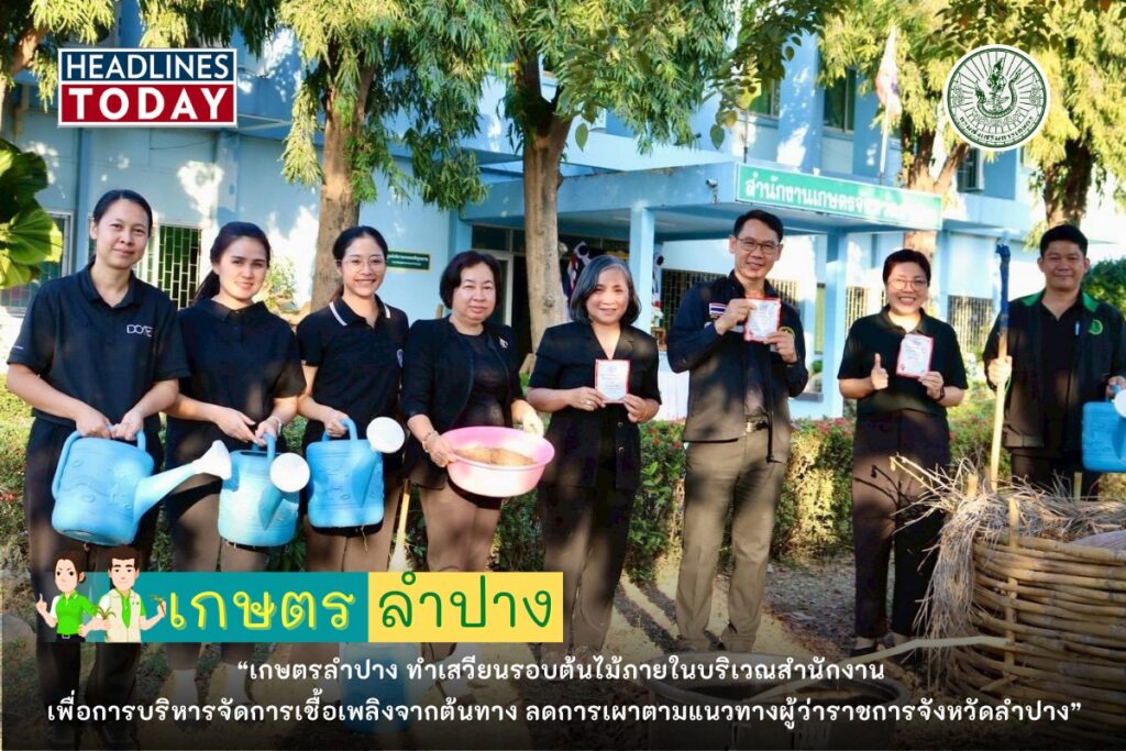 เกษตรลำปาง ทำเสวียนรอบต้นไม้ภายในบริเวณสำนักงาน เพื่อการบริหารจัดการเชื้อเพลิงจากต้นทาง ลดการเผาตามแนวทางผู้ว่าราชการจังหวัดลำปาง