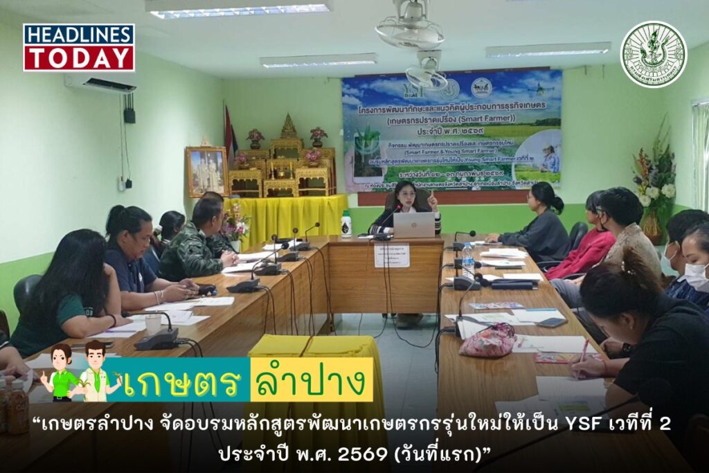 วันที่ 12 กุมภาพันธ์ 2569 นายอภิรักษ์ หลักชัยกุล เกษตรจังหวัดลำปาง มอบหมายให้นางสาวจีรายุ ไวสิทธิ์ นักวิชาการส่งเสริมการเกษตรปฏิบัติการ กลุ่มส่งเสริมและพัฒนาเกษตรกร ดำเนินการจัดอบรมหลักสูตรพัฒนาเกษตรกรรุ่นใหม่ให้เป็น Young Smart Farmer เวทีที่ 2 โครงการพัฒนาทักษะและแนวคิดผู้ประกอบการธุรกิจเกษตร (เกษตรกรปราดเปรื่อง (smart farmer)) ประจำปี พ.ศ. 2569 โดยมีวัตถุประสงค์เพื่อพัฒนาทักษะเกษตรกรให้เป็นเกษตรกรมืออาชีพ พร้อมยกระดับเป็นผู้ประกอบการเกษตรกรที่มีศักยภาพด้านการเกษตร แปรรูป การตลาดสินค้าเกษตร และบริหารตลอดห่วงโซ่อุปทาน ณ ห้องประชุมสิริเกษตร สำนักงานเกษตรจังหวัดลำปาง