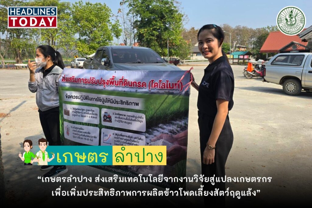 วันที่ 19 กุมพาพันธ์ 2569 นายอภิรักษ์ หลักชัยกุล เกษตรจังหวัดลำปาง มอบหมายให้ นางสาวนลิน เวียงนาค นักวิชาการส่งเสริมการเกษตรชำนาญการ กลุ่มส่งเสริมและพัฒนาการผลิต สำนักงานเกษตรจังหวัดลำปาง ร่วมกับเจ้าหน้าที่สำนักงานเกษตรอำเภอเมืองลำปาง และสถานีพัฒนาที่ดินลำปาง ร่วมมอบวัสดุปรับปรุงดิน เพื่อส่งเสริมและขยายผลการจัดทำแปลงการใช้ปุ๋ยตามค่าวิเคราะห์ดิน ให้แก่เกษตรกรผู้ปลูกตามโพดเลี้ยงสัตว์ฤดูแล้ง ตามโครงการส่งเสริมเทคโนโลยีการปลูกข้าวโพดเลี้ยงสัตว์ฤดูแล้งเพื่อเพิ่มประสิทธิภาพการผลิต ภายใต้ทุนอุดหนุนการวิจัย ประจำปีงบประมาณ พ.ศ.2568 จากสำนักงานพัฒนาการวิจัยการเกษตร(องค์การมหาชน) มีวัตถุประสงค์เพื่อขยายผลงานวิจัย เทคโนโลยีที่เกี่ยวข้องให้เกษตรกรผู้ปลูกข้าวโพดเลี้ยงสัตว์ฤดูแล้ง และเพื่อเพิ่มประสิทธิภาพการผลิตข้าวโพดเลี้ยงสัตว์ฤดูแล้ง เป้าหมายเกษตรกรผู้ปลูกข้าวโพดเลี้ยงสัตว์ฤดูแล้ง จำนวน 50 ราย ณ องค์การบริหารส่วนตำบลบ้านค่า อำเภอเมืองลำปาง จังหวัดลำปาง