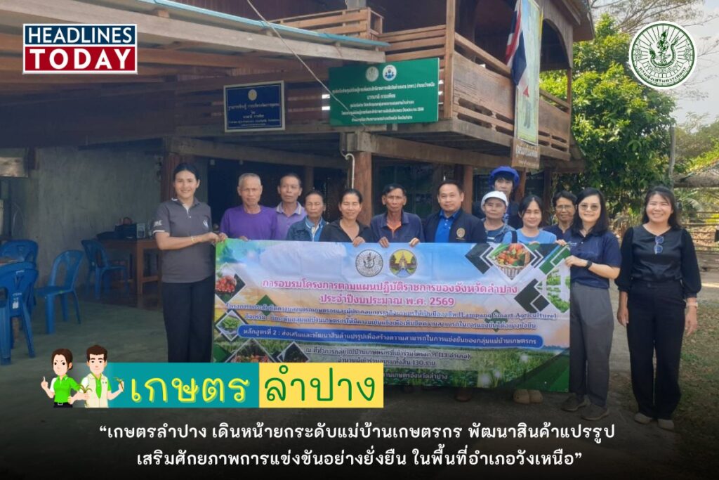 วันที่ 18 กุมภาพันธ์ 2569 นายอภิรักษ์ หลักชัยกุล เกษตรจังหวัดลำปาง มอบหมายให้ นางสาวฉัตรภรณ์ แก้วสอน นักวิชาการส่งเสริมการเกษตรปฏิบัติการ และ นางสาวจีรายุ ไวสิทธิ์ นักวิชาการส่งเสริมการเกษตรปฏิบัติการ กลุ่มส่งเสริมและพัฒนาเกษตรกร สำนักงานเกษตรจังหวัดลำปาง ร่วมกับสำนักงานเกษตรอำเภอวังเหนือ จัดอบรมหลักสูตรที่ 2 “ส่งเสริมและพัฒนาสินค้าแปรรูปเพื่อสร้างความสามารถในการแข่งขันของกลุ่มแม่บ้านเกษตรกร” ภายใต้กิจกรรมยกระดับกลุ่มแม่บ้านเกษตรกรให้มีความเข้มแข็ง และเพิ่มขีดความสามารถในการแข่งขันอย่างยั่งยืน โครงการยกระดับขีดความสามารถเกษตรกรและผู้ประกอบการธุรกิจเกษตรให้เป็นมืออาชีพ (Lampang Smart Agriculture) ตามแผนปฏิบัติราชการของจังหวัดลำปาง ประจำปีงบประมาณ พ.ศ. 2569 ณ กลุ่มแม่บ้านเกษตรกรบ้านจำตอง หมู่ที่ 15 ตำบลร่องเคาะ อำเภอวังเหนือ จังหวัดลำปาง