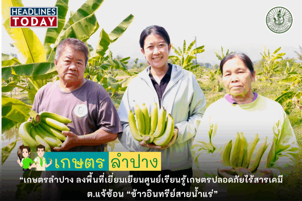 วันที่ 19 กุมภาพันธ์ 2569 นายอภิรักษ์ หลักชัยกุล เกษตรจังหวัดลำปาง มอบหมายให้เจ้าหน้าที่กลุ่มยุทธศาสตร์และสารสนเทศ ลงพื้นที่ติดตามงานและเยี่ยมเยียนแปลงเกษตรกรต้นแบบ (Smart Farmer) ของ นายจรัญ สิทธิจู ณ ศูนย์เรียนรู้เกษตรปลอดภัยไร้สารเคมี หมู่ที่ 5 ตำบลแจ้ซ้อน อำเภอเมืองปาน จังหวัดลำปาง ได้ติดตามผลการดำเนินงาน ยกระดับข้าวไทยด้วย “สายน้ำแร่” และเกษตรอินทรีย์ จากการลงพื้นที่พบว่า นายจรัญ สิทธิจู ได้บริหารจัดการพื้นที่การเกษตรอย่างเป็นระบบ โดยมีจุดเด่นสำคัญคือการใช้ประโยชน์จากทรัพยากรธรรมชาติ “บ่อน้ำแร่เย็น” ที่ไหลผ่านพื้นที่ นำมาใช้ในการเพาะปลูกข้าวพันธุ์ทางเลือกที่มีโภชนาการสูง ได้แก่ ข้าวหอมนาคา และ ข้าวมะลิดำหนองคาย ส่งผลให้ผลผลิตข้าวมีเอกลักษณ์เฉพาะตัวเป็นที่รู้จักในนาม “ข้าวสายน้ำแร่แจ้ซ้อน” ซึ่งผลิตภายใต้มาตรฐานเกษตรอินทรีย์ (Organic) ที่ปลอดภัยต่อทั้งผู้ผลิตและผู้บริโภคในด้านการจัดการดินและปุ๋ย เกษตรกรได้ประยุกต์ใช้ “แหนแดง” เป็นปุ๋ยพืชสดในนาข้าว เพื่อเพิ่มธาตุไนโตรเจนและอินทรียวัตถุในดิน เป็นการลดต้นทุนการซื้อปุ๋ยเคมี ทั้งยังช่วยควบคุมวัชพืชในนาข้าวได้อย่างมีประสิทธิภาพ สอดคล้องกับนโยบายของกรมส่งเสริมการเกษตรที่มุ่งเน้นให้เกษตรกรพึ่งพาตนเองและลดการใช้สารเคมีทางการเกษตร ภายในศูนย์เรียนรู้ฯ ยังมีการจัดสรรพื้นที่แบบ เกษตรผสมผสาน มีการปลูกพืชหลากหลายชนิดเกื้อกูลกัน ทำให้มีรายได้หมุนเวียนตลอดปีและสร้างความมั่นคงทางอาหารในครัวเรือน