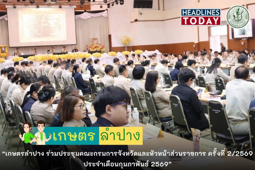 วันที่ 27 กุมภาพันธ์ 2569 เวลา 09.30 น. นายอภิรักษ์ หลักชัยกุล เกษตรจังหวัดลำปาง พร้อมด้วยนางสาวสุบิน แก้วเต็ม หัวหน้ากลุ่มยุทธศาสตร์และสารสนเทศ เข้าร่วมการประชุมคณะกรมการจังหวัดและหัวหน้าส่วนราชการ ครั้งที่ 2/2569 ประจำเดือนกุมภาพันธ์ 2569 โดยมีนายวิวัฒน์ อินทร์ไทยวงศ์ ผู้ว่าราชการจังหวัดลำปาง เป็นประธานการประชุม นายพัชระ สิมะเสถียร และนายกฤษณะ พินิจ รองผู้ว่าราชการจังหวัดลำปาง ผู้แทนตำรวจ ทหาร อัยการจังหวัดลำปาง หัวหน้าส่วนราชการทุกสังกัด นายอำเภอ และหน่วยงานที่เกี่ยวข้องเข้าร่วมประชุม เพื่อเป็นการรับทราบผลการดำเนินงานตามนโยบายของรัฐบาลและของจังหวัด พร้อมทั้งหารือข้อราชการที่สำคัญ นโยบายเร่งด่วนและนโยบายที่สำคัญของรัฐบาลและจังหวัดลำปาง เพื่อให้ส่วนราชการที่เกี่ยวข้องยึดถือและนำไปปฏิบัติ